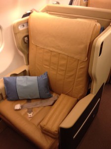What I did not like is the bed. The seat can easily be turned into a fully lie flat bed but it is way too short for me. I’d say, bed length is about 1,80m – similar to British Airways seat in the A318. And, even more uncomfortable, I’d to lie with angled legs and foot space is very limited. Unfortunately, I did not take pictures of that :-( I know, I’m too tall for a frequent flyer and Singapore Airlines is an Asian airline….